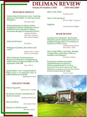 Diliman Review Vol. 69 No. 2 2025 is now available online at the UPD E-Journals. You may access the issue at saliksik@upd.edu.ph then search for Diliman Review. The issue features articles, creative works, and book reviews…