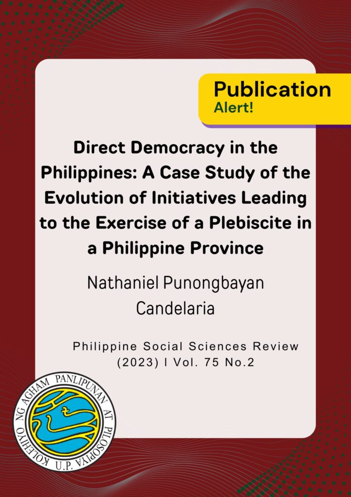Direct Democracy in the Philippines: A Case Study of the Evolution of Initiatives Leading to the Exercise of a Plebiscite in a Philippine Province by Nathaniel Punongbayan Candelaria